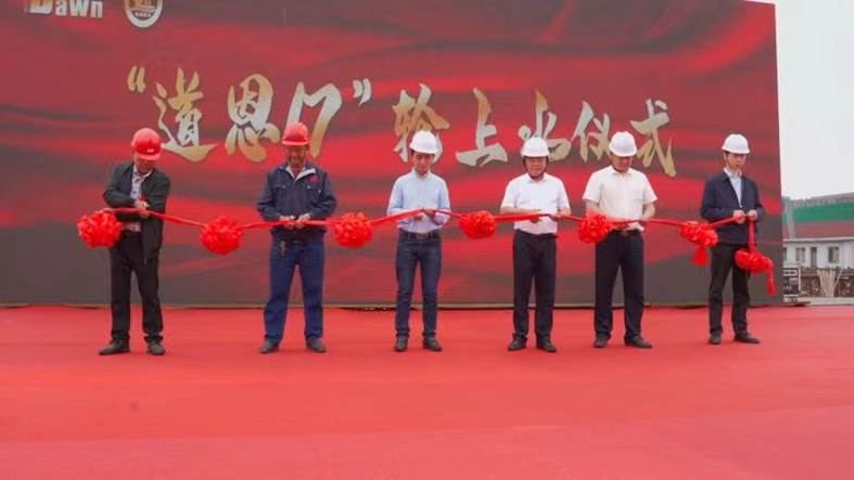 Yan Linhua, Chairman of Ningbo Zhenhe Shipbuilding Co., Ltd., Yan Xuebao, General Manager, and Yan Xingcong, Deputy General Manager; Han Limei, Deputy Director of the Investment Management Committee of Dawn Group, General Manager Xie, Dawn Group Modern Logistics Industry Leader, Han Yongwei, General manager of Shandong Dawn International Logistics Co., Ltd, Executive Deputy General Manager Diao Zhongjiang and his team; Chief Engineer He Yunlong, General Manager Assistant Chen Zhiwei, Business Manager Zheng Haotian of HuaYuanXing Shipping Co., Ltd.; Surveyor of China Classification Society JiSai and his team attended the ceremony and witnessed this historic moment together.